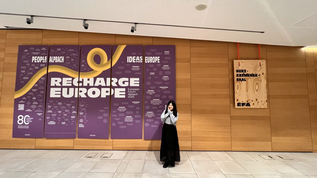 本文作者楊沐萱,擅長政策分析與策略傳播;圖片攝於 2025 歐洲論壇現場。